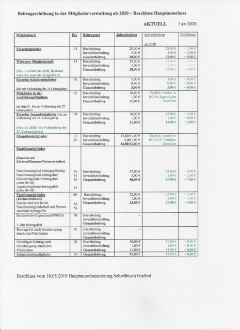 Der Hauptausschuss des Schwäbischen Albvereins in Stuttgart hat in seiner Sitzung vom 18.05.2019 in Schwäbisch Gmünd beschlossen, die Mitgliedsbeiträge ab dem Jahr 2020 deutlich zu erhöhen.